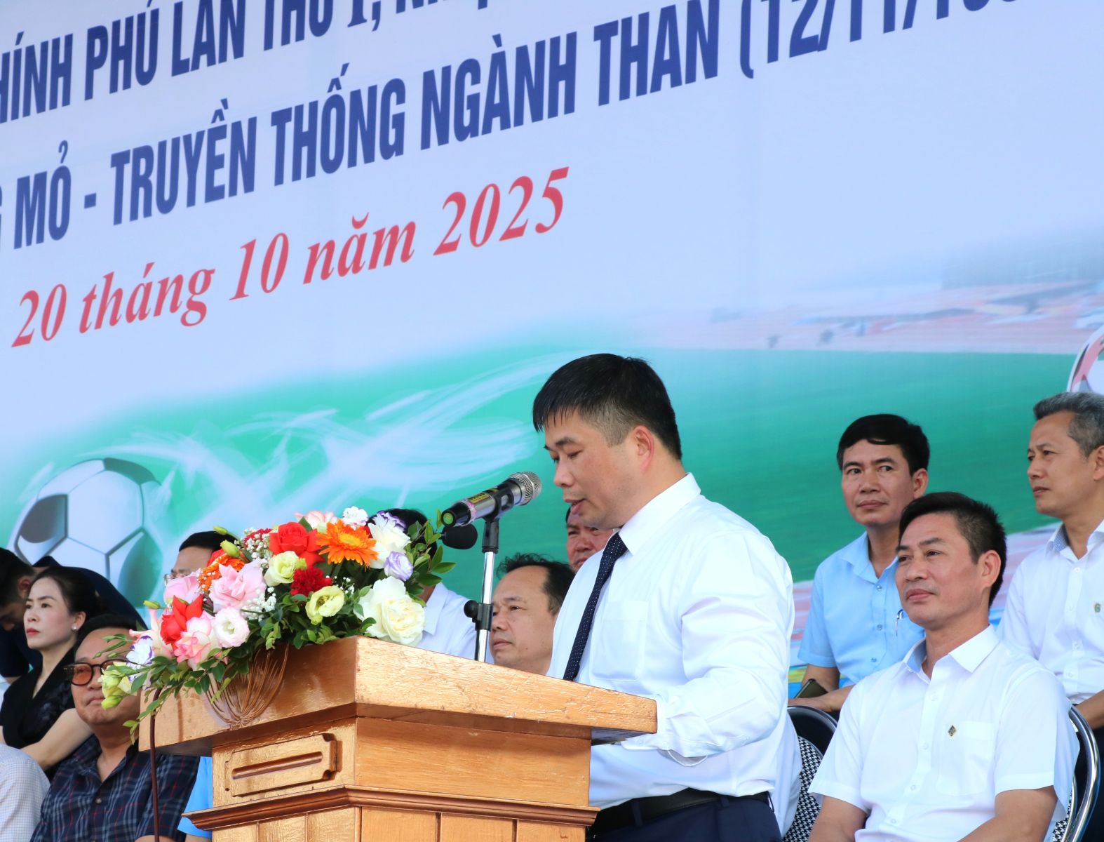 Phát biểu khai mạc, đồng chí Nguyễn Văn Tuân, Phó Tổng Giám đốc Tập đoàn, Trưởng ban Tổ chức giải đã nhiệt liệt chào mừng các đại biểu, các VĐV, huấn luyện viên về tham dự giải. Đồng thời nhấn mạnh, nếu trong lao động, sản xuất, đội ngũ cán bộ, công nhân, người lao động toàn Tập đoàn luôn đoàn kết, sáng tạo và bền bỉ vượt qua khó khăn để hoàn thành nhiệm vụ, thì trên sân cỏ hôm nay, tinh thần ấy tiếp tục được thể hiện bằng quyết tâm, lối chơi fair-play và khát vọng cống hiến. Đặc biệt, giải đấu không chỉ sôi động với những pha bóng mạnh mẽ, quyết liệt từ các đội bóng nam, mà còn thêm phần cuốn hút bởi sự tham gia của các đội bóng nữ. Đồng chí bày tỏ tin tưởng, qua từng trận đấu, giải đấu sẽ mang đến nhiều pha bóng đẹp, nhiều cảm xúc thăng hoa, để lại ấn tượng sâu sắc trong lòng các vận động viên và khán giả.