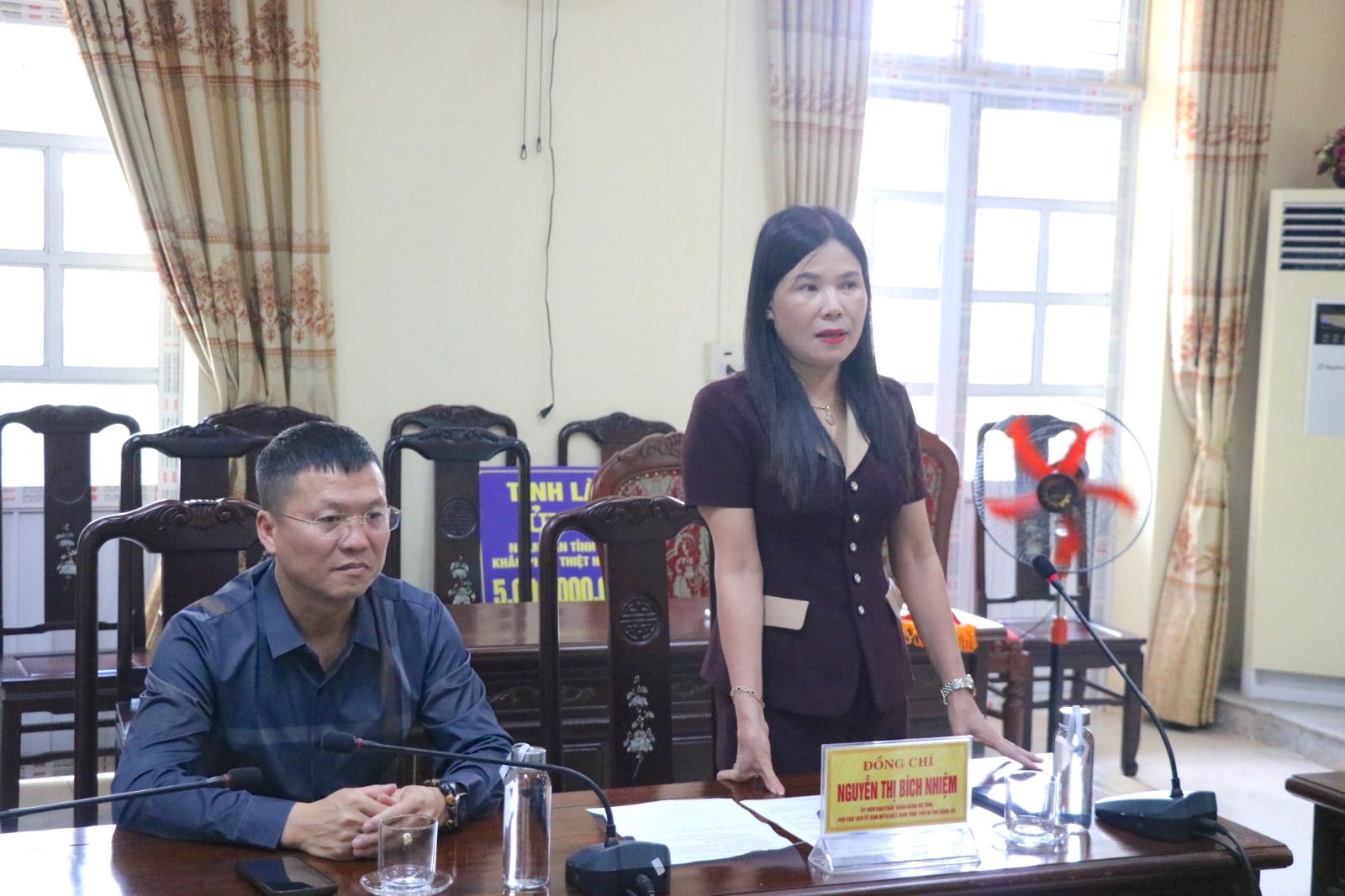 Đ/c Nguyễn Thị Bích Nhiệm - Ủy viên BCH Đảng bộ tỉnh, Phó Chủ tịch phụ trách Ủy ban MTTQ tỉnh, Phó trưởng Ban thường trực Ban Vận động cứu trợ tỉnh bày tỏ lời cảm ơn với sự quan tâm và hỗ trợ kịp thời, thiết thực của TKV