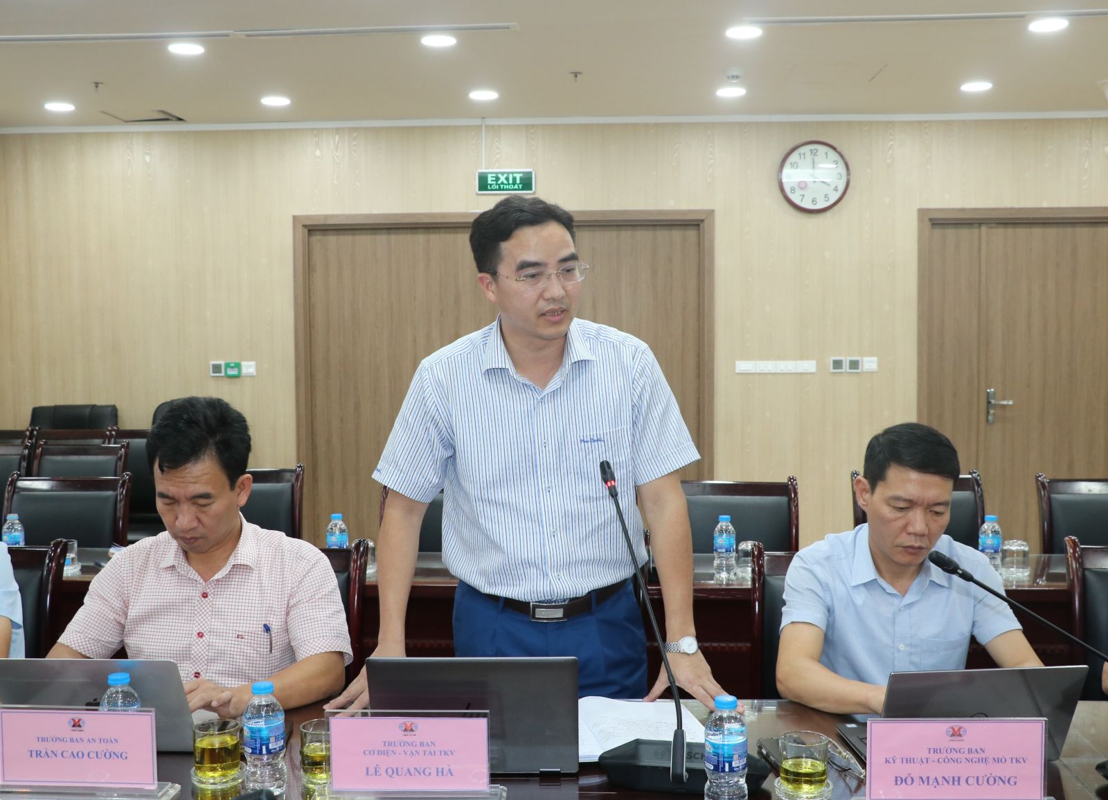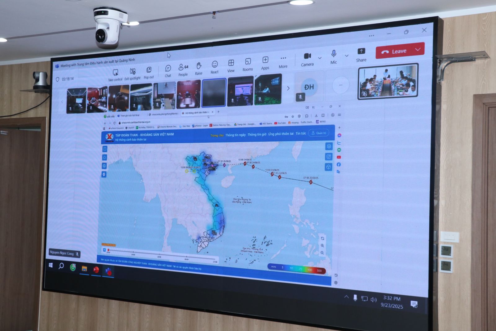 Tại cuộc họp triển khai công tác ứng phó bão số 9 (bão Ragasa), Ban MT (Thường trực Ban chỉ huy PCTT-TKCN TKV) đã báo cáo tình hình diễn biến bão số 9 và công tác triển khai ứng phó bão. Theo dự báo của Trung tâm Dự báo Khí tượng thủy văn Quốc gia, sáng ngày 25/9 vùng ven biển từ Quảng Ninh đến Thanh Hóa có gió mạnh dần lên cấp 6-7, sau tăng lên cấp 8, vùng gần tâm bão cấp 9-10, giật cấp 12; do ảnh hưởng của bão gây mưa to đến ngày 26/9 ở khu vực Bắc Bộ, Thanh Hóa và Nghệ An với lượng mưa phổ biến 100-250mm, cục bộ có nơi trên 400mm. Ban MT cũng lưu ý các khu vực, các đơn vị tại Quảng Ninh và Lạng Sơn, Thái Nguyên, Cao Bằng… có thể bị ảnh hưởng nhiều của bão và mưa lớn; các đơn vị sản xuất than lộ thiên như Cao Sơn, Đèo Nai - Cọc Sáu, Hà Tu; các đơn vị sản xuất hầm lò như Thống Nhất, Quang Hanh, Dương Huy, Vàng Danh…; các đơn vị kho vận, tuyển than… cần đặc biệt chú trọng đến các vị trí xung yếu, các khu vực bãi thải, đập chắn chân bãi thải, mương, suối thoát nước, khu vực hầm lò… để phòng tránh sạt lở, lũ quét, ngập mỏ…