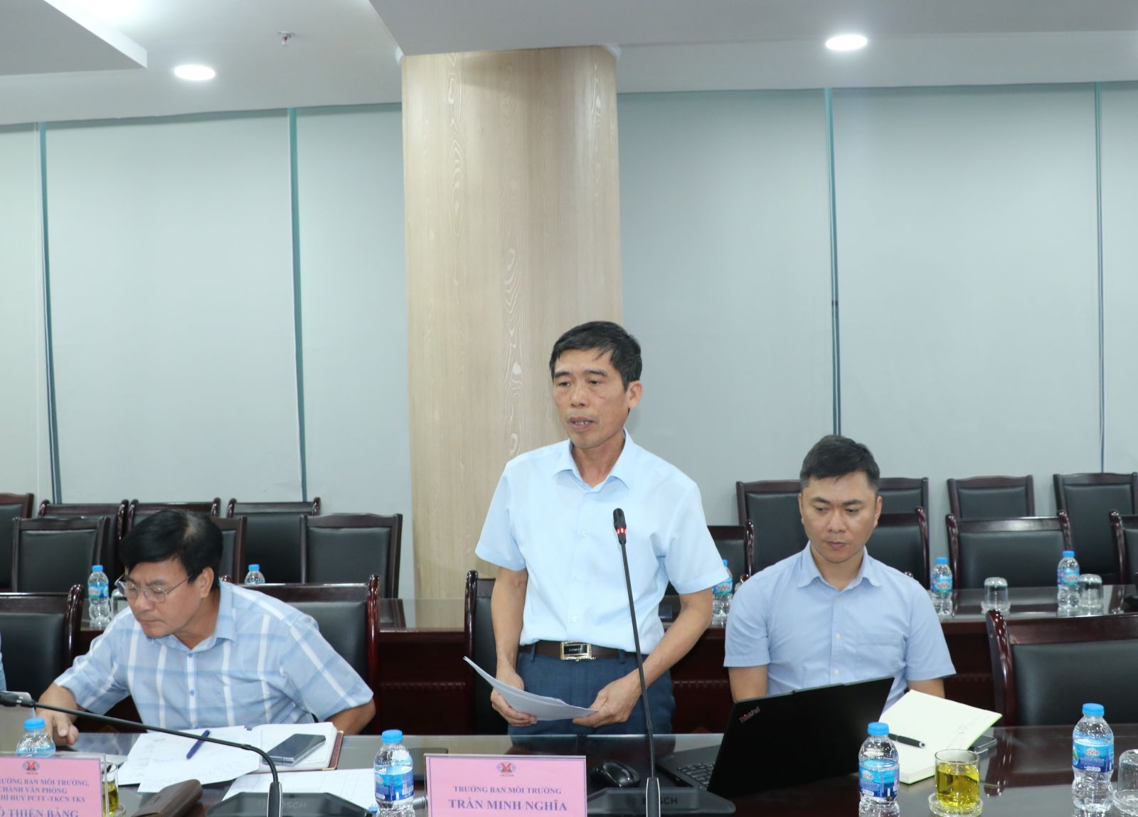 Trưởng Ban MT Trần Minh Nghĩa báo cáo tình hình diễn biến bão số 9 và công tác triển khai ứng phó bão